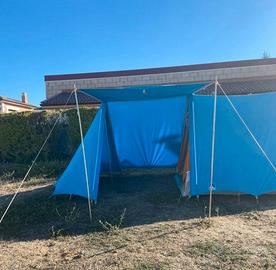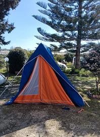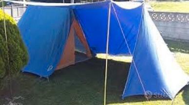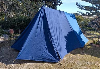 vendo bellissima tenda Ferrino mod Dona 5, tessuto puro cotone in ottimo stato, colore blu e arancio. Possibilità di spedizione previo preventivo con corriere, ho inserito la cifra "simbolica" di 20€ ma magari costa anche meno... Prezzo tenda trattabile. Sacco che contiene la tenda riparato (invio foto su richiesta)