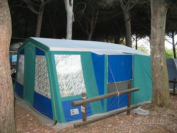 Vendo tenda da campeggio con tutti accessori (teli per il pavimento e antipioggia fornello bombola gas gazebo mobiletti vari ) ideale per chi vuole iniziare a fare campeggio con baget limitato .