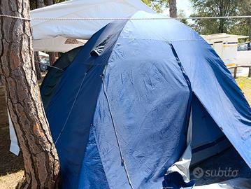 tenda molto spaziosa,con separé all'interno anche rimovibile,ci stanno due materassi gonfiabili matrimoniali,tenuta benissimo,facile da montare.