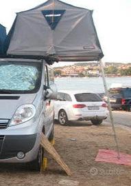 tenda da campeggio overcamp modello large( per 2 adulti e 2 bambini ) (oppure 3 adulti) si installa sopra il tetto dell'auto tramite barre portatutto, completa di zanzariere, finestre laterali, materasso, apertura su due lati, scaletta estensibile, provata sotto tre giorni di pioggia non entrata una goccia d'acqua, apertura e chiusura in 5 minuti, misure aperta cm 200x 180 chiusa misure cm 200x 90 consegna a mano