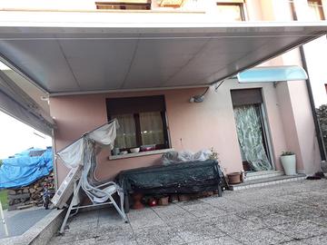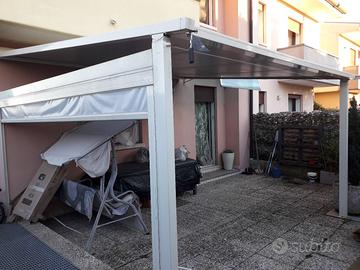 Tenda da esterno 4mx4m circa , motorizzata con telecomando e sensore vento compresa di tenda laterale manuale
