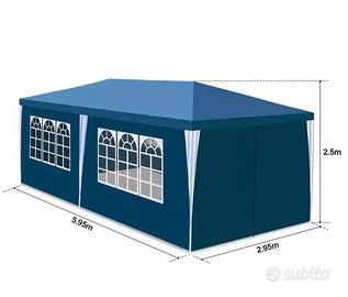 Tenda da Festa Blu Impermeabile 3x6m con 6 Pareti Laterali Rimovibili – Resistente ai Raggi UV, Robusto Padiglione da Giardino per Eventi, Riunioni all'Aperto e Rifugio per Tutte le Condizioni Meteorologiche, Riunioni Stagionali | Pareti Laterali Rimovibili | Tenda Impermeabile, Tende per Feste all'Aperto