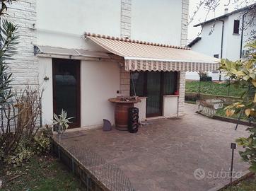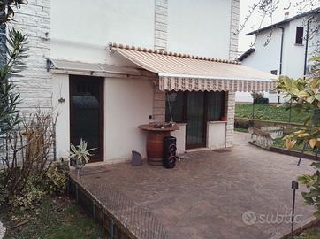 tenda da giardino elettrica e manuale.Larghezza 5 metri.Con telo ancora in buono stato.