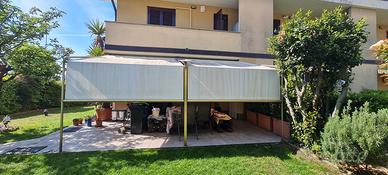 tenda in Alluminio addossata al muro di 5mt con 2 teli separati riavvolgibili 1 con un foro di 1 cm. possibilità di ritirarla presso la mia abitazione