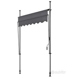 Tenda da sole a rullo avvolgibile, senza fissaggio, installabile in appoggio con pali telescopici e piedini a pressione. Regolabile in altezza e in sporgenza o inclinazione.