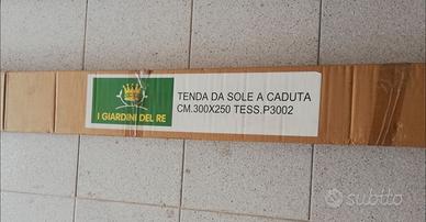 Vendo tenda da sole a caduta, nuova, mai montata, ancora nel sul scatolo di imballaggio, completa di ogni sua parte e di asta per aprire e chiudere la tenda.