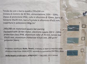 Tenda para sole elettrica per esterno da 290cm utili di larghezza e 200cm di estensione,