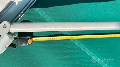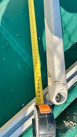 Vendo tenda da sole a bracci estensibili professionale, misure larghezza 5 metri ed estensione bracci 3 metri. La tenda è in ottime condizioni, il telo è pulito e senza strappi, la struttura in alluminio è solida e perfettamente funzionante. Ideale per grandi terrazzi, balconi o attività commerciali. Dettagli tecnici: Misure: 500 cm (L) x 300 cm (Sbraccio). Tessuto: Colore, Verde di alta qualità. Manovra: Manuale Fissaggio: Staffe incluse per montaggio a parete Condizioni: Ottime Prezzo: € 500