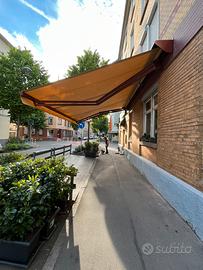 Vendo tenda da sole a due bracci DOPPI usata solamente per esposizione in fiera quindi praticamente nuova. LA SECONDA FOTO È SOLO DI ESEMPIO La tenda a bracci doppi ha un’elevatissima resistenza al vento. Caratteristiche: Tessuto Tempotest nero Motore radio Cherubini con telecomando Staffe attacco parete in acciaio zincato verniciato Possibilità di aggiungere sensore vento