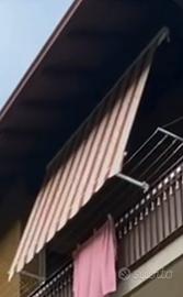 Tenda da sole a caduta larghezza 3 metri tessuto TEMPOTEST svendo causa ristrutturazione casa. Con manovella manuale e bracci da fissare al balcone.