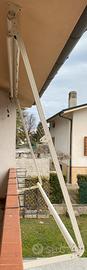 Tenda da sole a caduta con guide laterali e braccetti regolabili. Tenda motorizzata con telecomando. Larghezza 2800mm Altezza 2100mm Materiale del tessuto, plastico resistente ai raggi UV e idrorepellente