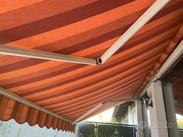 Tenda da sole, con avvolgimento manuale. Lunghezza 550 cm, apertura massima 280 cm