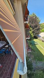 Vendo tenda da sole con cassonetto a scomparsa totale (bracci e telo) NUOVA, molto robusta a bracci a catena lunghezza/sporgenza/bracci a catena 210 cm, larghezza massima struttura 300cm con cassonetto in alluminio colore struttura AVORIO RAL 1013 ,completa di tutti gli accessori , di facile montaggio ,fissaggio a a soffitto modificabile anche per parete, con inclinazione ampiamente regolabile dotata di motore a fine corsa elettronico posizionato spalle al muro a SINISTRA, compreso di telecomando, mentre opzionale anemometro funzionante via radio o barra terminale a vibrazione oscillometro, necessari della stessa marca del motore Mastermotion fatto in Italia.