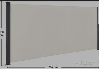 Vendo tenda da sole laterale retraibile, frangivista e frangivento, in alluminio e tessuto impermeabile. Nuova, mai installata, colore bianco. Estensione massima: 5,00 mt / altezza 1.80. Prezzo 80,00 euro non trattabile.