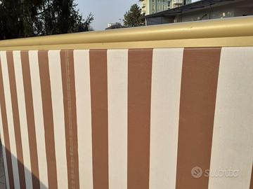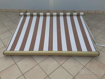 Tenda da sole prodotta da primaria azienda italiana robusta struttura in alluminio anodizzato larghezza cm. 198 apertura fino a cm.180; tessuto di alta qualità TEMPOTEST 47 ottimo stato; la tenda è stata aperta solo raramente e quasi sempre arrotolata sotto un tettuccio protettivo.