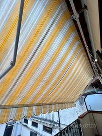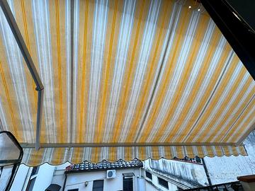 Tenda da esterno impermeabile, 5,50 metri di lunghezza e escursione di 2,50 metri, motorizzata con telecomando a distanza e con sensore di vibrazione che in caso di forte vento ritira su la tenda in automatico. Disponibile fino al 10 Aprile.