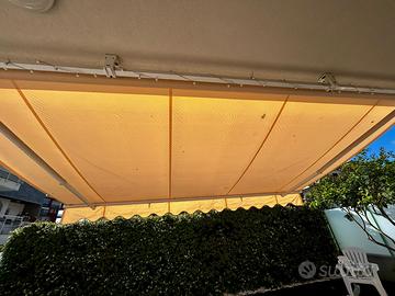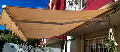 TENDA A BRACCI ESTENSIBILI MOD. MINI HELIX L. CM.500XSP.260 CON TESSUTO TEMPOTEST PARÀ COLORE 15/12 LA TENDA È DOTATA DI MOTORE CHERUBINI MOD. BLUE GARDA 50NM Come da foto. Piccolo danno da bruciatura su telo.