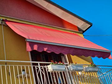 Vendo tenda da sole rossa a bracci con struttura bianca, larghezza metri 3,40, estensione metri 2,00. Bordo frontale sostituito da poco. Da lavare. Prezzo 160,00 €.