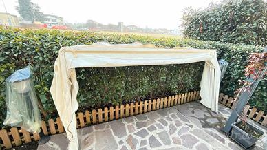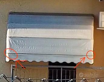 MQ. 3,92, movimento manuale con corda, tessuto PVC a tinta unita bianca, buone condizioni, leggermente danneggiata sui due angoli contrassegnati in foto ma tranquillamente utilizzabile. Visibile a Cremona. Solo consegna a mano. 150 euro. Prezzo trattabile.