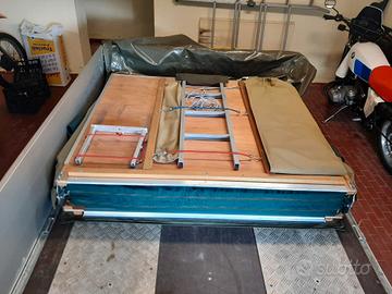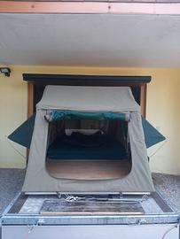 Lunghezza aperta cm 244, larghezza cm 140 - Altezza interna aperta cm 130 - Dimensioni chiusa 140 cm × 120 cm × 30 cm - Completa di materassino di 5 cm e scaletta allungabile - Tessuto impermeabile traspirante e fortemente antivento - Ideale per 2 persone più un bambino - Usata 1 volta