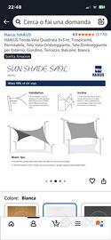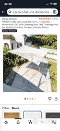 Tenda ombreggante 3x3 con anelli agli angoli e bella rinforzata. Usata poco con funi .