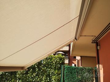 Tenda parasole motorizzata perfettamente funzionante, con telecomando. Misure 410 x 200 cm