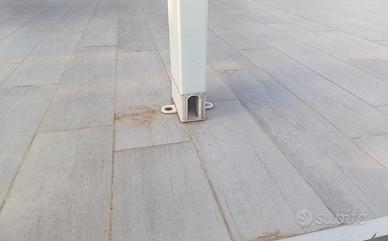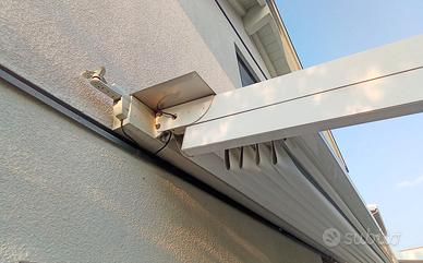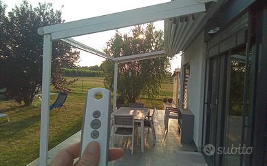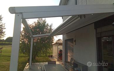 tenda motorizzata dimensioni lung. cm 500 larg cm. 300 interamente in allumio e copertura in PVC antigrandine altezza lato parete max cm. 290 est. cm. 240 Gia pulita e smontata .