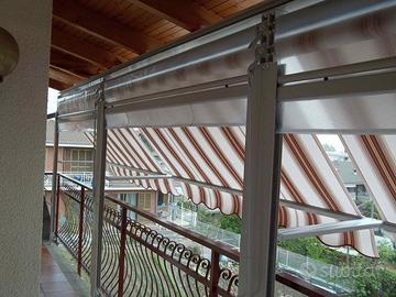 Le immagini sono indicative! Tende anti vento a doppio rullo con tenda da sole, il tessuto è colore avorio.
