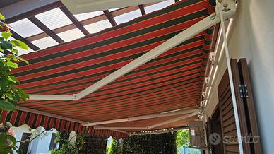Tende da sole a bracci avvolgibili marca Gigus, dimensioni m 4x4 ciascuna, funzionanti e mai soggette q intemperie in quanto poste sotto tettoia in policarbonato. Vendo per rifacimento veranda. Vendute smontate. Prezzo per singola tenda