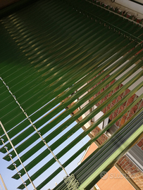 Tende veneziane verde menta. Disponibili subito perché già smontate. Molto belle. Misure: 2 x 107 1 x127 1 x135 Altezza fino a 290 cm Altezza lamella 5 cm Su Milano ed hinterland le consegno a casa. 80 euro l'una.