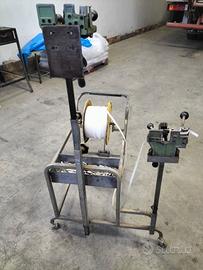 vendo 2 tendireggia/reggiatrice collocate su apposito carrello su ruote regolabile in altezza, perfettamente funzionante. il tutto fornito con 6 rotoli reggetta + clip di chiusura in acciaio
