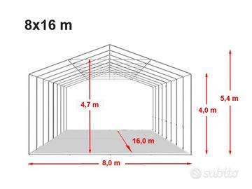 Flessibile nell'utilizzo come riparo o deposito, stoccaggio merci, ampliamenti di fabbricati, garage, ricovero mezzi, attrezzature, animali, uso Bar, o p.es. come copertura della vostra piscina all'aperto.