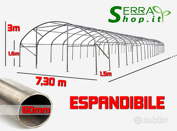 La struttura è modulabile con passo arcata 1,5 m e può essere estesa anche successivamente aggiungendo moduli per aumentare la lunghezza quando vuoi. Perfetto come box PVC per deposito o magazzino