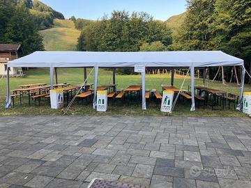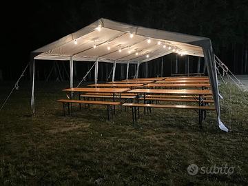 Tendone 10x5 telo in PVC completo di chiusure laterali finestrate (ancora imballate), illuminazione, picchetti e corde per fissaggio al suolo. Non spedisco, ma posso consegnare nel raggio di 40 km. possibilita fatturazione.