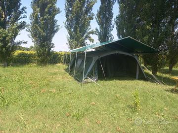 Vendo Tendone gazebo NUOVO MAI USATO, fatto fare per montarlo al mare in campeggio e mai usufruito. Mai stato esposto alla pioggia, al sole ,alle interperie! Le foto inserite nell' annuncio sono foto fatte l'unica volta che è stato montato per essere certi che tutto fosse perfettamente assemblabile . Vendo a malincuore ma purtroppo non riesco usufruirne. prezzo poco trattabile. tendone stupendo!!! Vendo con cinghie e picchetti compresi acquistati da me separatamente xchè volevo la struttura il più possibile sicura.