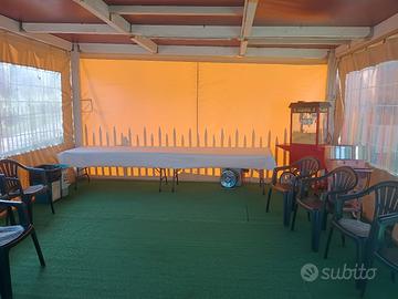 gazebo tendostruttura per ristorante in legno con copertura PVC,apertura laterale scorrevole su tre lati,impianto elettrico,5,03x6,07 h 2,70-2,50 prezzo trattabile