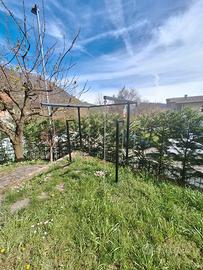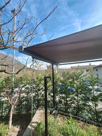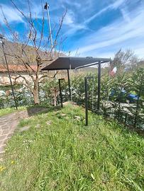 benissimo pezzo realizzato con tubolare 50x50 acciaio e catena galvanizzata pitturato di nero. con la copertura di un telo che ed apribile sul rullo avvolgibile. le misure sono : altezza 210 cm profondità 155 cm larghezza 200 cm