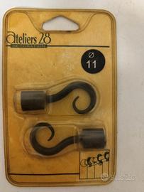 Coppia di terminali per bastone tenda, design a riccio. - Marca: Ateliers 28 - Colore: nero - Materiale: metallo - Diametro: 11