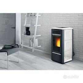 Termostufa a pellet che alimenta i termosifoni e i pannelli radianti a pavimento di tutta la casa.