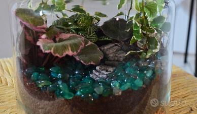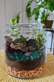 Terrario chiuso, fatto a mano con tappo sempre in vetro (le foto sono senza per far vedere l'interno).