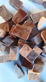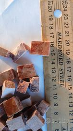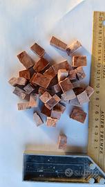 Tessere per mosaico in marmo Rosso Verona. Un lato lucido, spessore 10 mm, 4 lati tranciati a mano in forma irregolare. Confezioni da 500 g.