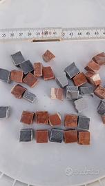 Tessere per mosaico in marmo, mix di 3 colori da surplus di materiali per altro lavoro. Grigio Bardiglio scuro, Rosso Verona e Rosso Alicante, 4 lati tranciati, circa mm 15 per 15 spessore 10 mm. Disponibili 1 confezione da 300 g, consumo stimato circa 23 kg/mq. Disponibili altri colori.