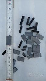 Tessere per mosaico in marmo Nero Cina, due lati tranciati, dimensioni circa mm 20 per 10 per 5, lucido su lato da 5 mm. Confezioni da 500 g. Disponibili diversi kg.
