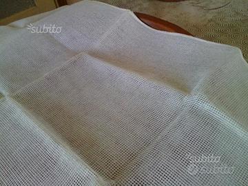trattasi di tessuti per il ricamo a punto croce: cm. 136 x 55 e cm. 90 x 36 ( quest'ultimpo a trama più larga) - tessuto di organza cm. 92 x 52 - tessuto a quadratini blu cm. 106 x 76