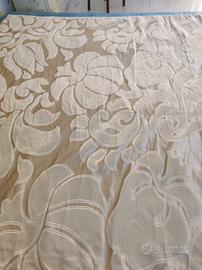 Tessuto seta di San Leucio, m 7,50, larghezza m 1,30. Comprata per fare le discese delle tende come vedesi nell'ultima foto, la seconda tenda è rimasta incompiuta per diversi motivi per cui la cedo per solo 30 euro al metro. Ancora nel rotolo come è stata comprata.