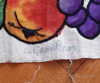Banda da ricamare antica già iniziata in lino con i suoi fili di cotone, vintage. Lunghezza totale cm. 210 e altezza cm. 18. Lunghezza zona da ricamare cm. 205 e altezza cm. 15 (vedi foto) . Le foto fanno parte integrante della descrizione
