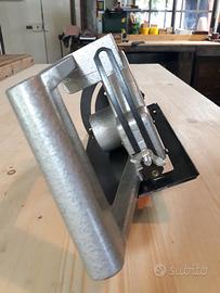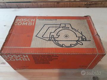 Testa sega circolare vintage Bosch Combi Vorsatz-Kreissage con attacco tipo S43 (anno 1972 - codice articolo: 0603030900) completa di lama al Cromo-Vanadio, battuta parallela e coltello separatore. Deve essere utilizzata accoppiandola con un trapano senza mandrino.