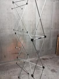 Due pareti Tetrart, dimensioni dei due display uniti 3,10 metri di larghezza x 2,19 metri di altezza, rimanenza materiale di service per eventi, vendo per realizzo. Le due pareti sono autonome cioè hanno ognuna la propria sacca per il trasporto e i propri accessori e ognuna ha i propri pannelli pubblicitari (quattro ognuna quindi 8 in tutto!) dell'ultimo servizio a cui erano dedicate e da cui si possono staccare le strisce magnetiche per installarle su altri pannelli a piacere. Vendo il tutto a un prezzo stracciato!