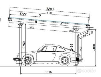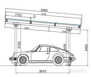 Carport tettoia per due auto in alluminio predisposto per l'alloggiamento dei pannelli fotovoltaici (Pannelli fotovoltaici non compresi e non fornibili).
