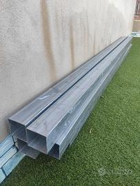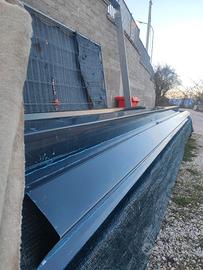 tettoia 7mx4.5m Struttura completamente imbullonata in ferro prezincato diviso in 2 telai.copertura in termocoppo compresa scossalina,grondaia e discendente e relative staffe.mai montata.